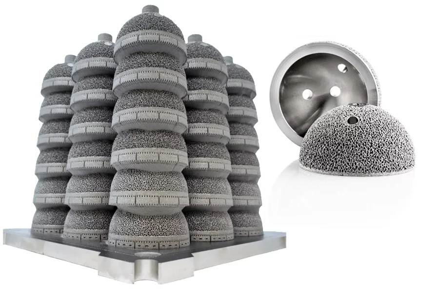 EBM (Electron Beam Melting) Przetapianie materiału z wykorzystaniem wiązki elektronów dla wytwarzania produkcyjnego ulepszonych panewek. Wytwarzanie addytywne (AM) zastępuje tradycyjne powłoki strukturami komórkowymi drukowanymi w 3D, które poprawiają początkowe umocowanie i pozwalają na szybsze zespolenie i wrastanie kości – ostoingegrację. Struktury komórkowe są zaprojektowane dla klinicznie zoptymalizowanej wielkości porów 650 mikronów. Przeczytaj, jak firma Amplify Additive stosuje tę technologię do swoich implantów.
